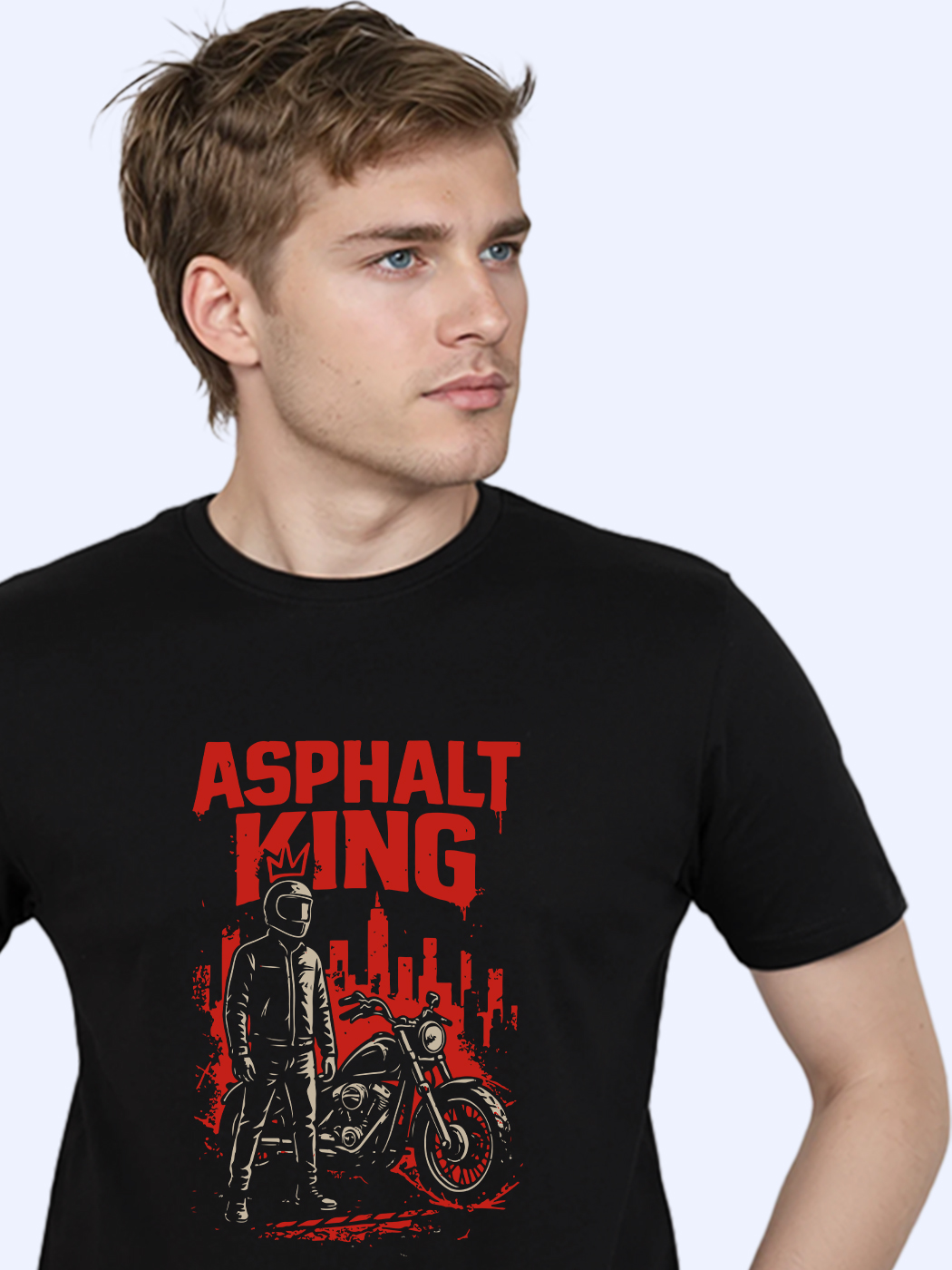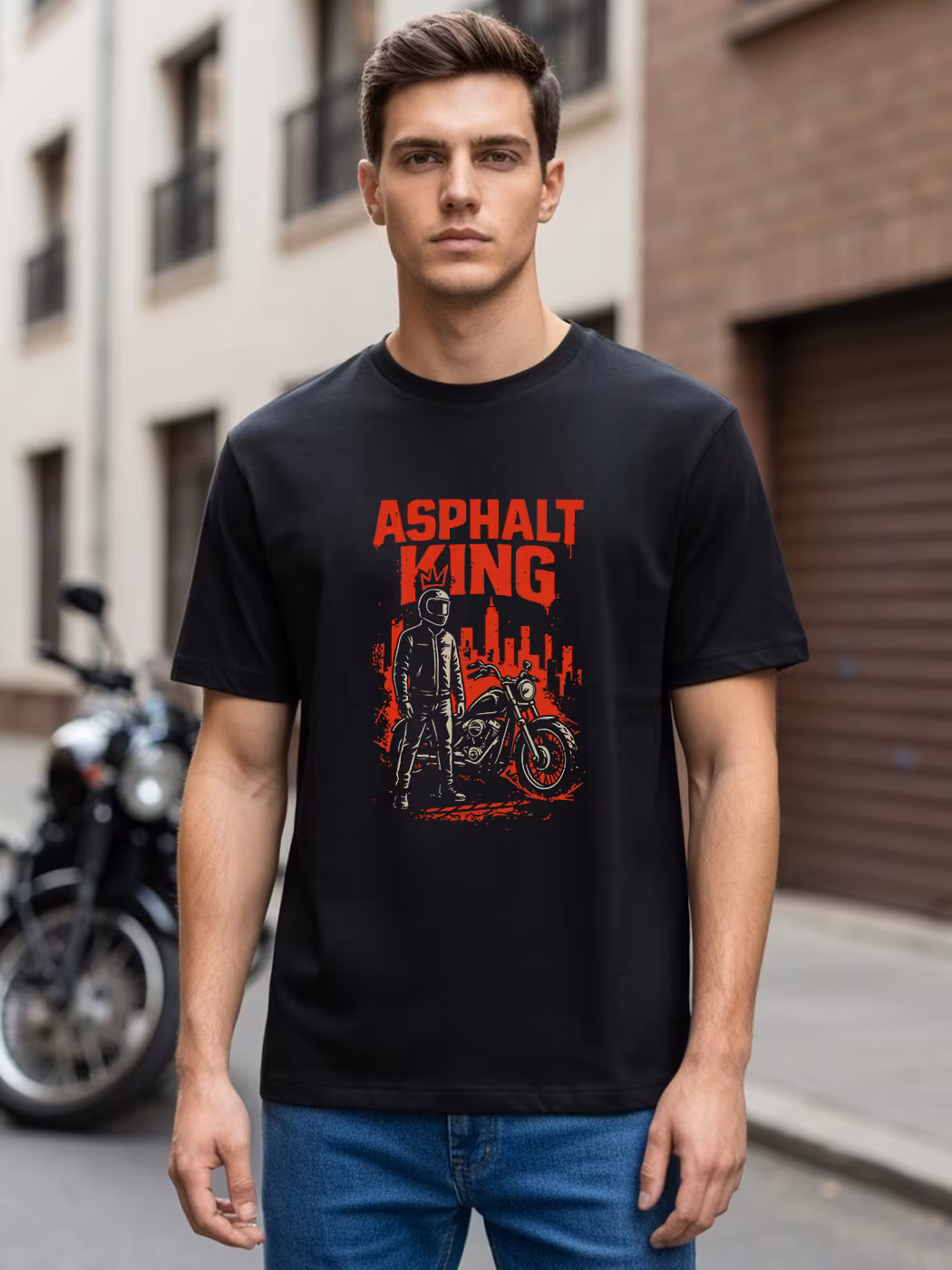 Bold asphalt-inspired half sleeve T-shirt for men, perfect for bikers and streetwear lovers seeking a rugged yet stylish statement piece.