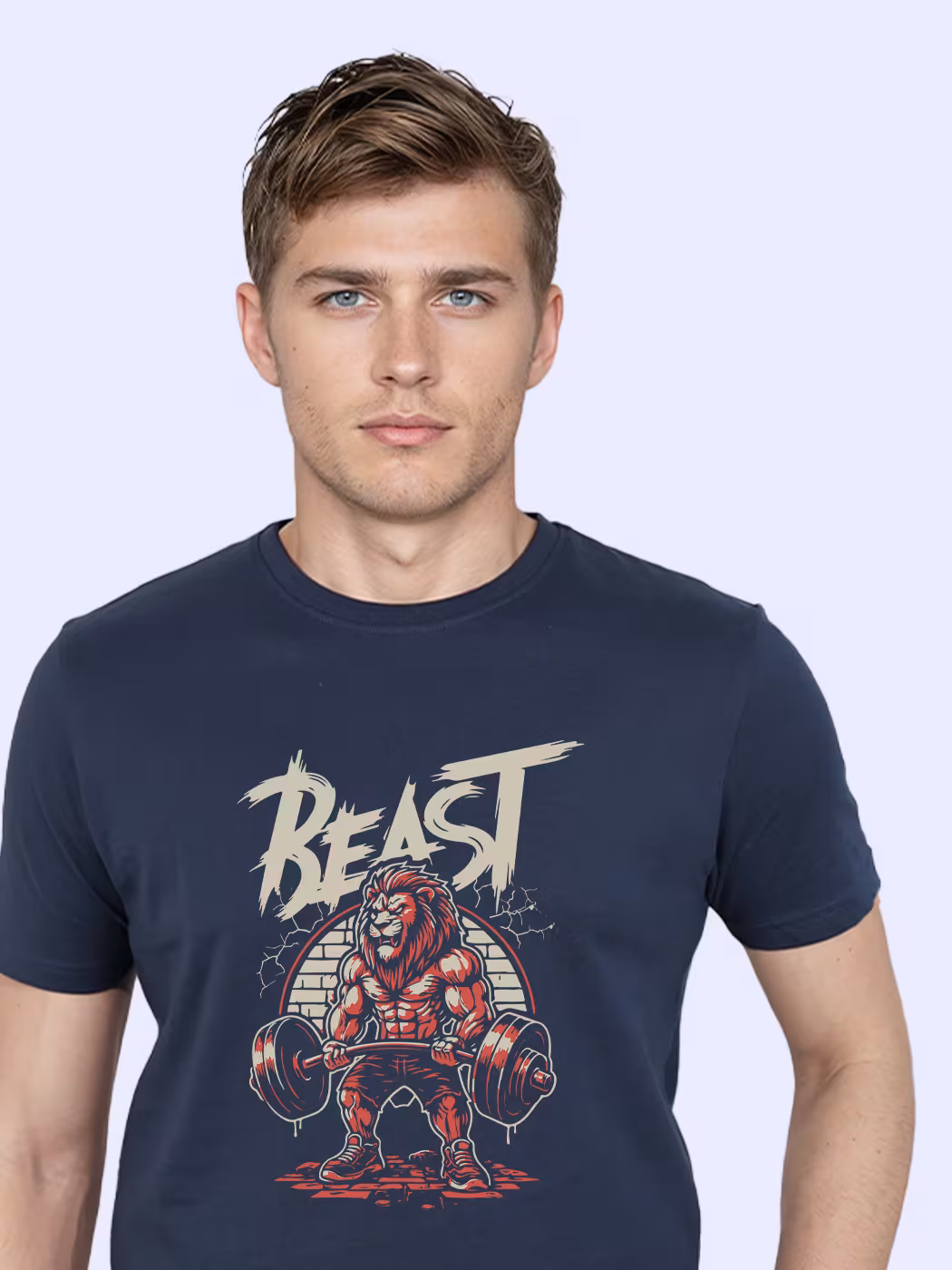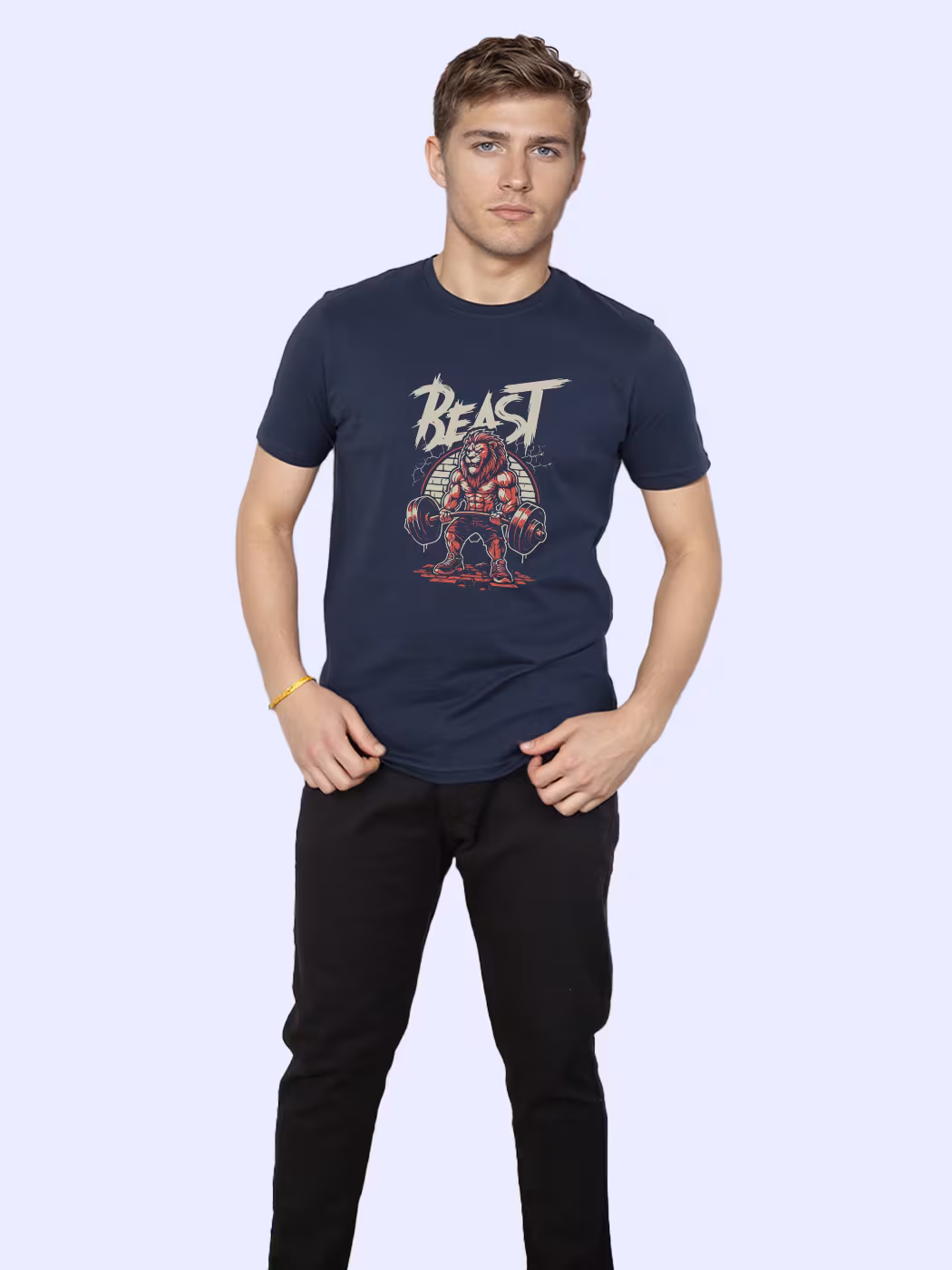 Beast T-shirt unleashes raw power. Half sleeve, durable fabric, and striking design embody strength and resilience. Perfect for workouts and streetwear style.