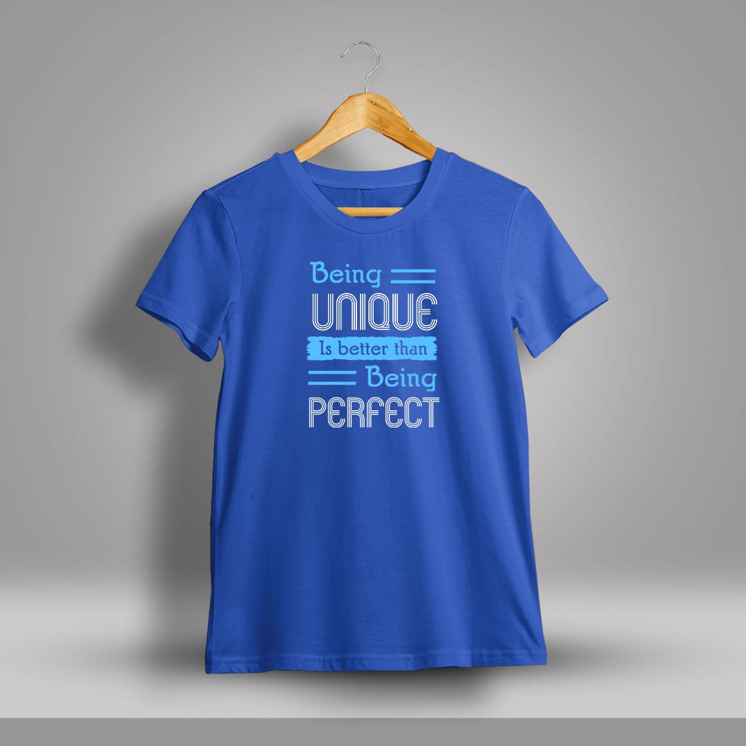 Being Unique Is Better Than Being Perfect Quotes Printed T-Shirt celebrates individuality with a striking design, making it an ideal pick for those who embrace their uniqueness.