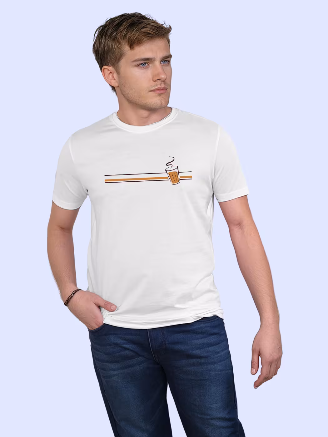 A half-sleeve t-shirt designed for true chai enthusiasts, combining soft fabric with trendy design, making it ideal for everyday wear or relaxed hangouts with friends.