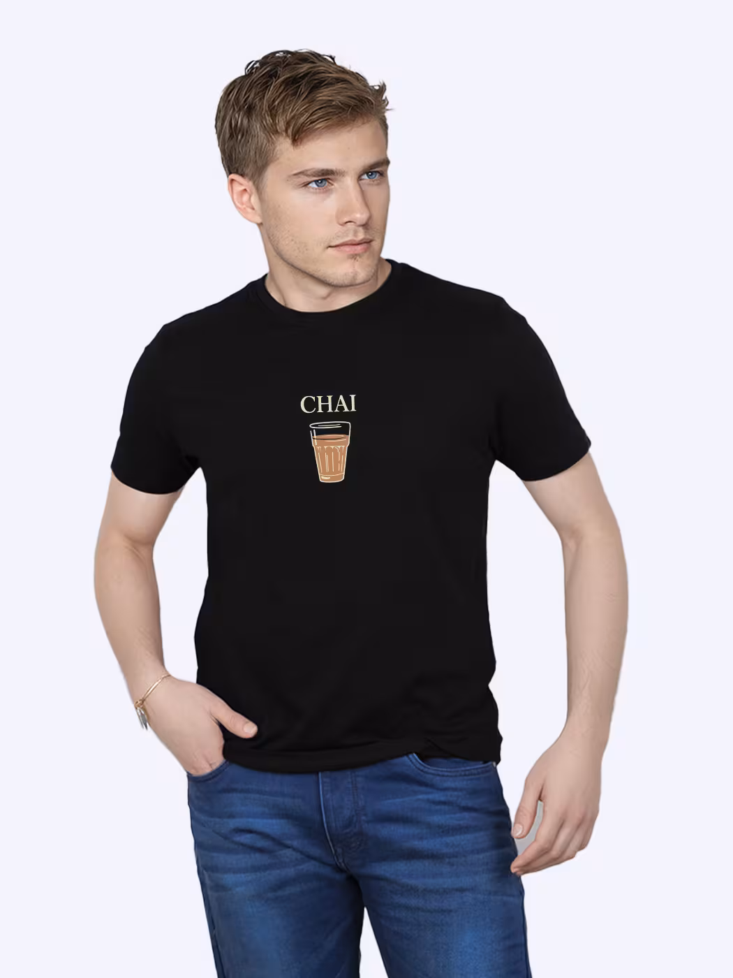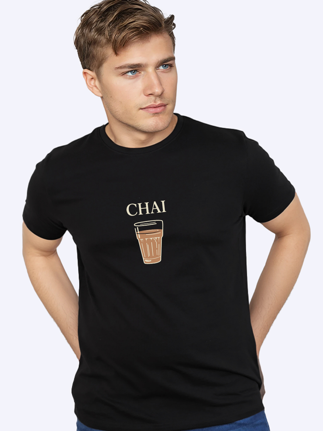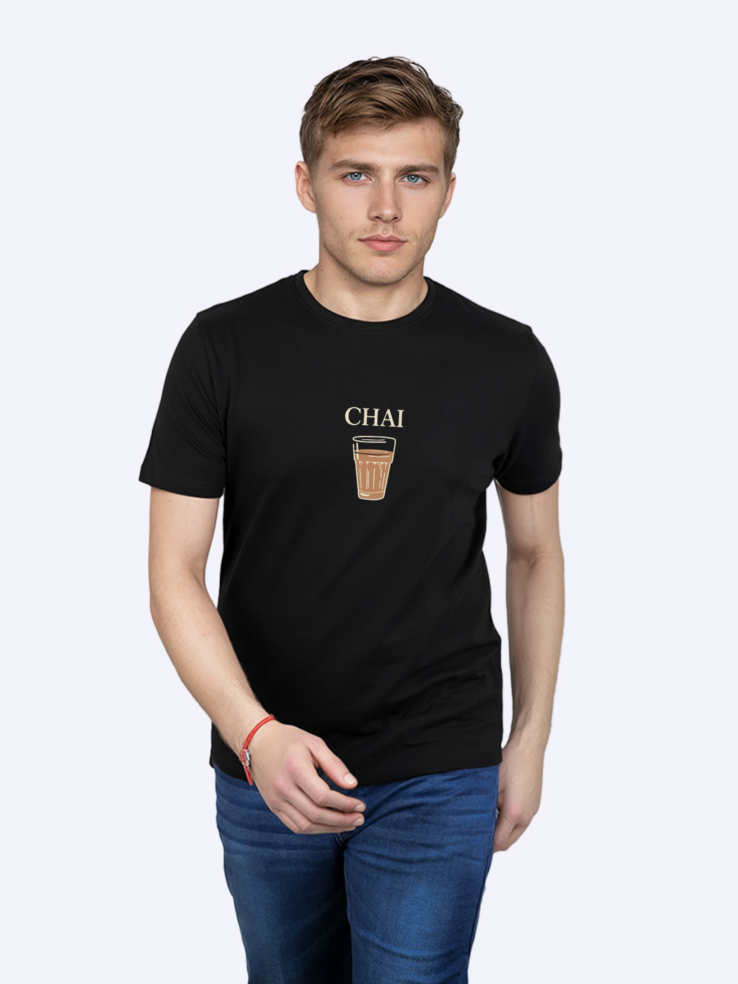Chai Printed T-Shirt for men with half sleeves. Perfect blend of comfort and casual style. Ideal for everyday wear, parties, or gifting.