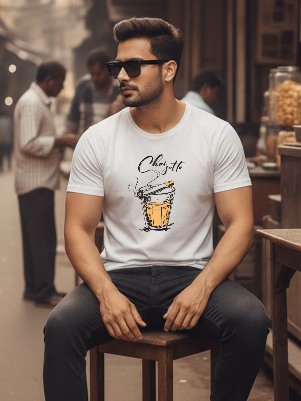 Celebrate your chai breaks with the Chai Sutta T-Shirt. Made from soft cotton, its quirky design is perfect for tea lovers who enjoy their moments of bliss.