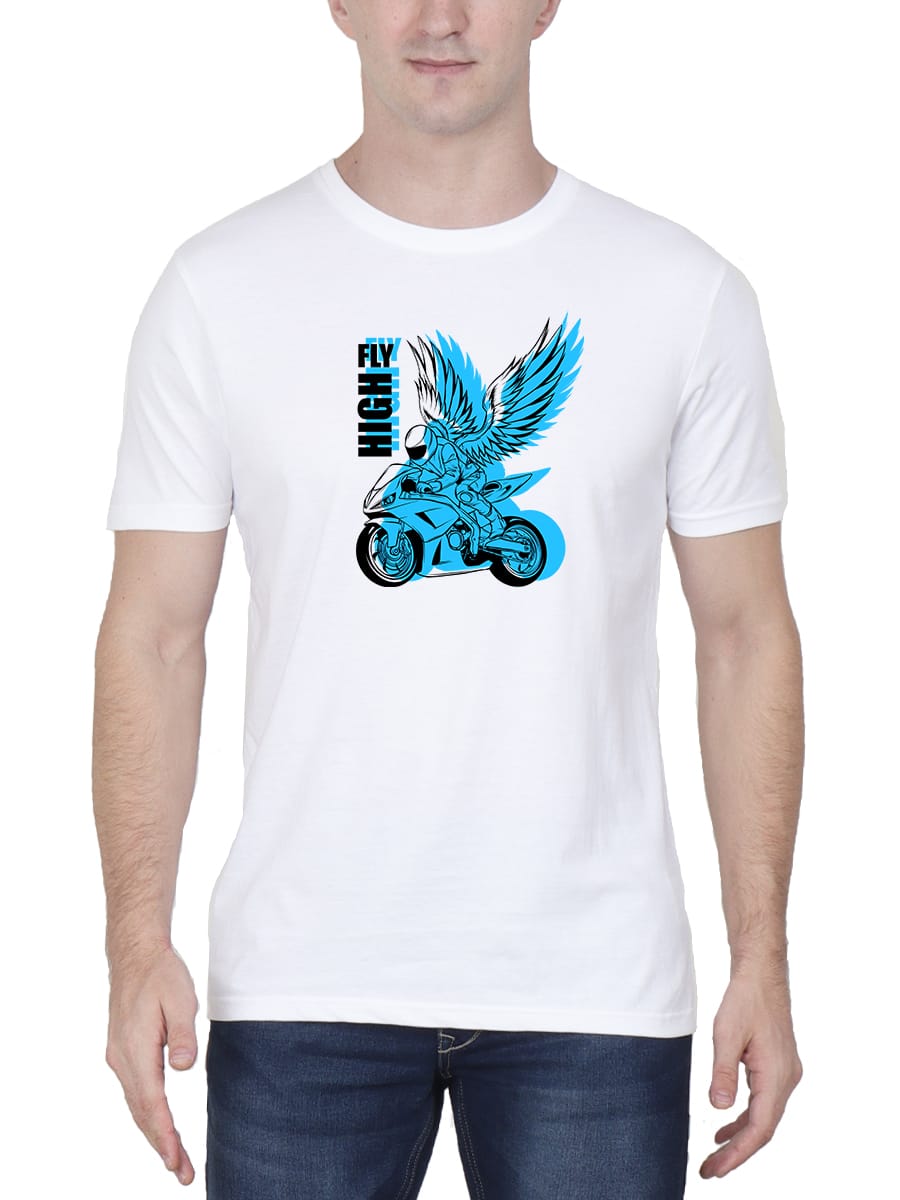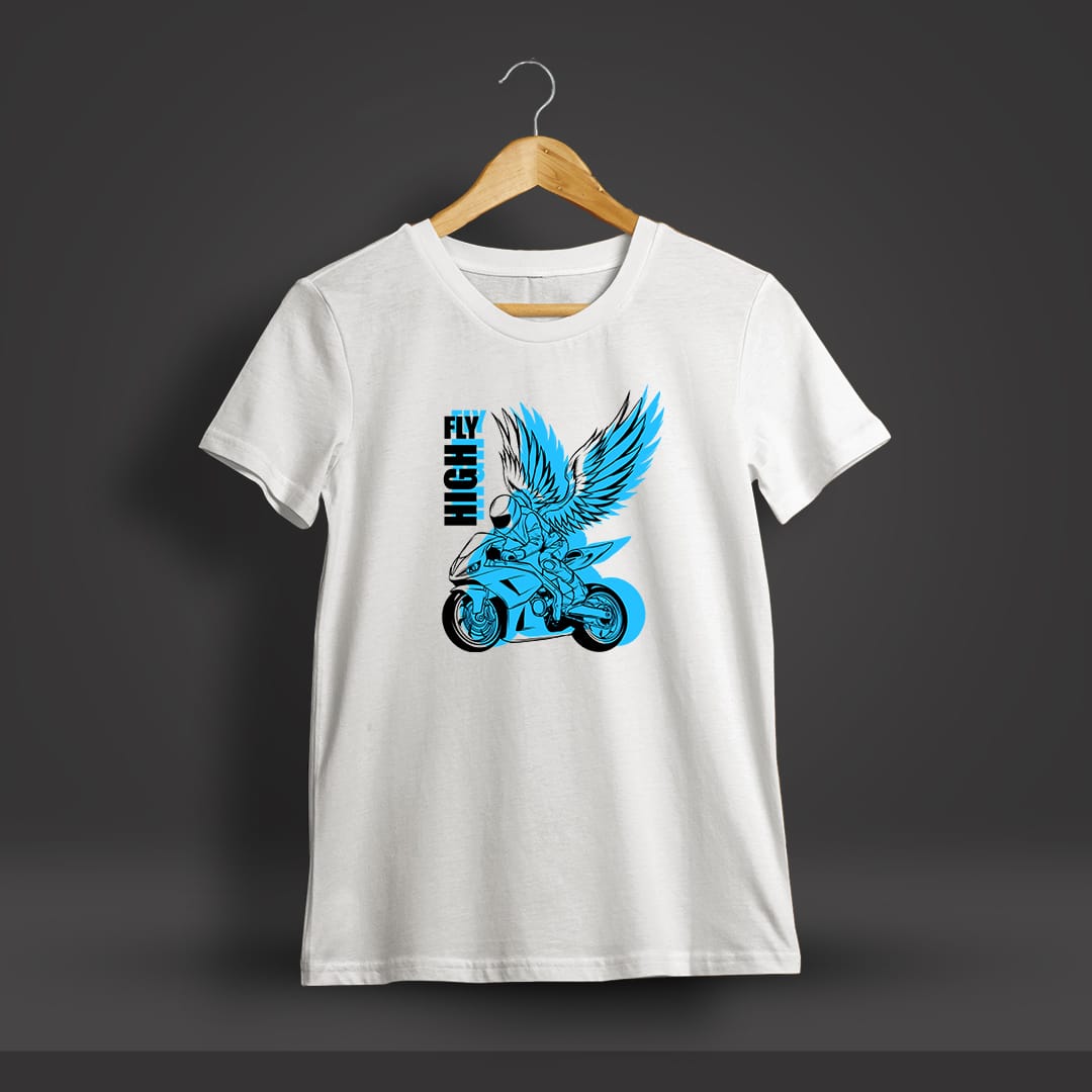 Fly High Bike Printed T-Shirt is designed for adventure seekers, showcasing a bold bike graphic that captures the thrill and freedom of riding on open roads.