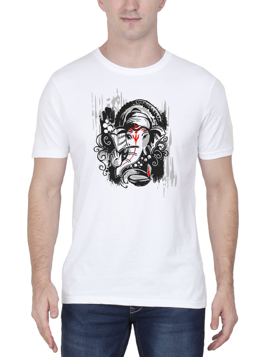 Ganpati Graphic T-Shirt features a striking Lord Ganesh design on soft, comfortable fabric, ideal for celebrating tradition with a contemporary twist.