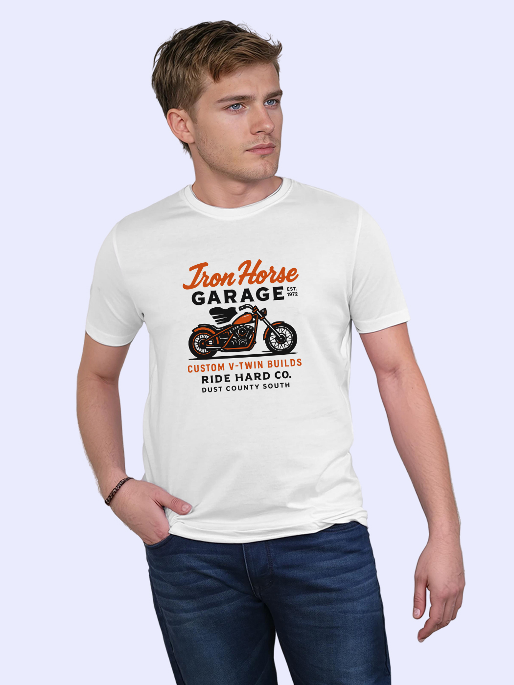 Classic motorcycle-themed half sleeve T-shirt for men, embodying strength, speed, and timeless biker culture.
