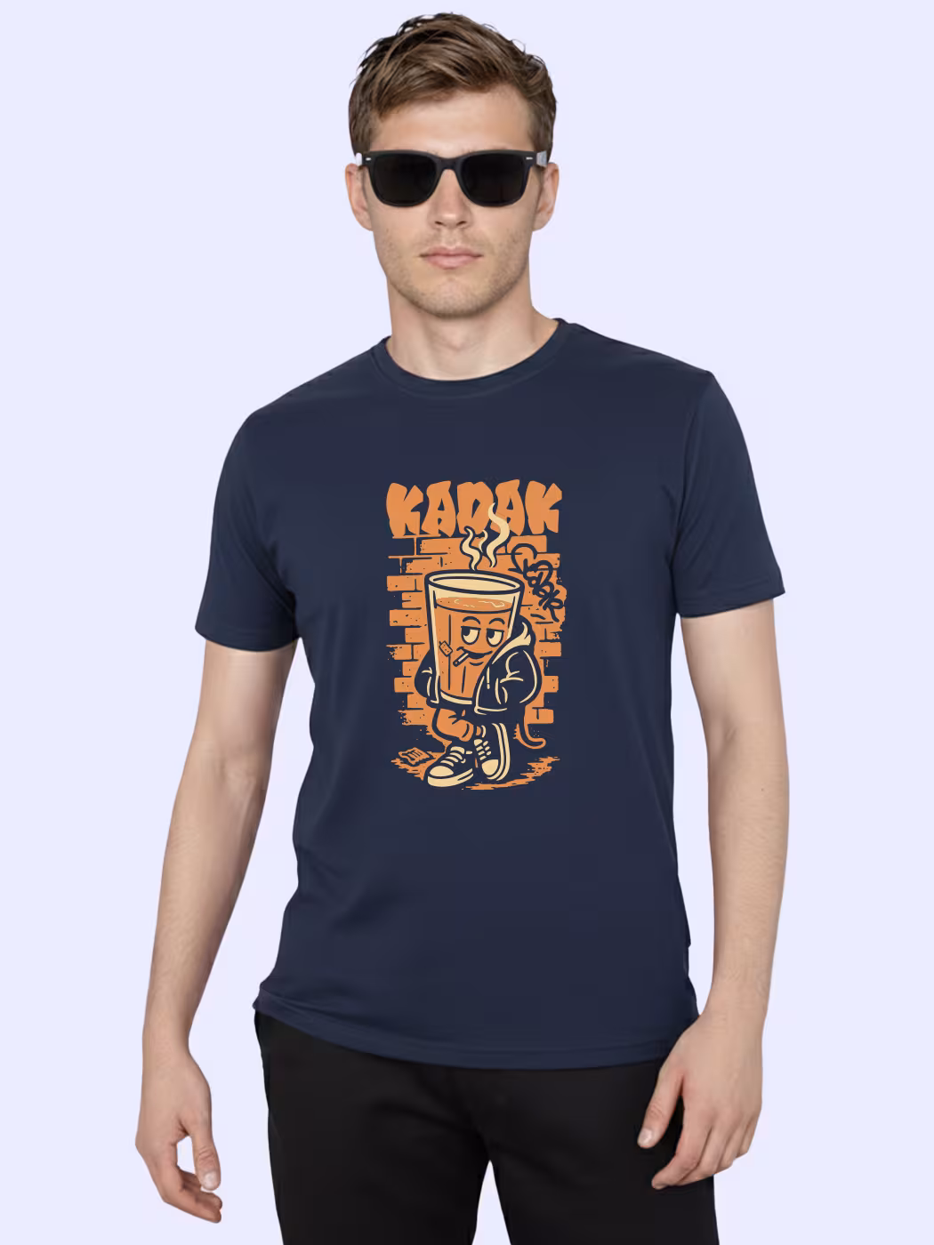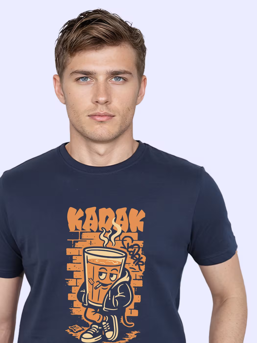 Bold and comfy, this Kadak half-sleeve t-shirt reflects strength and energy, perfect for casual wear while embracing the essence of strong, flavorful chai in style.