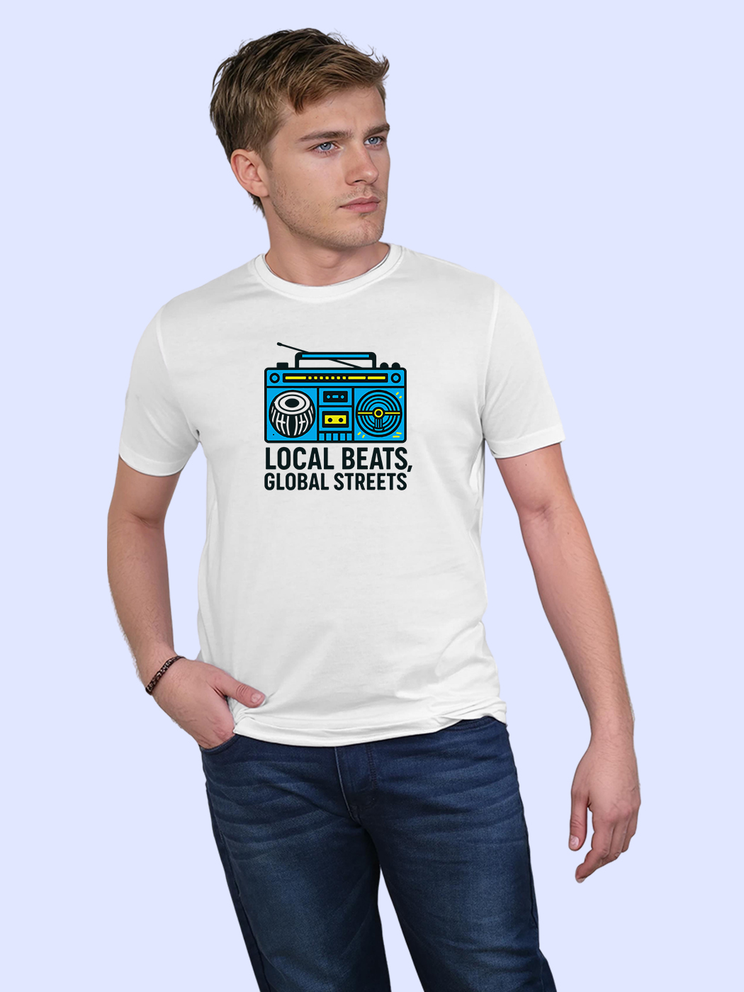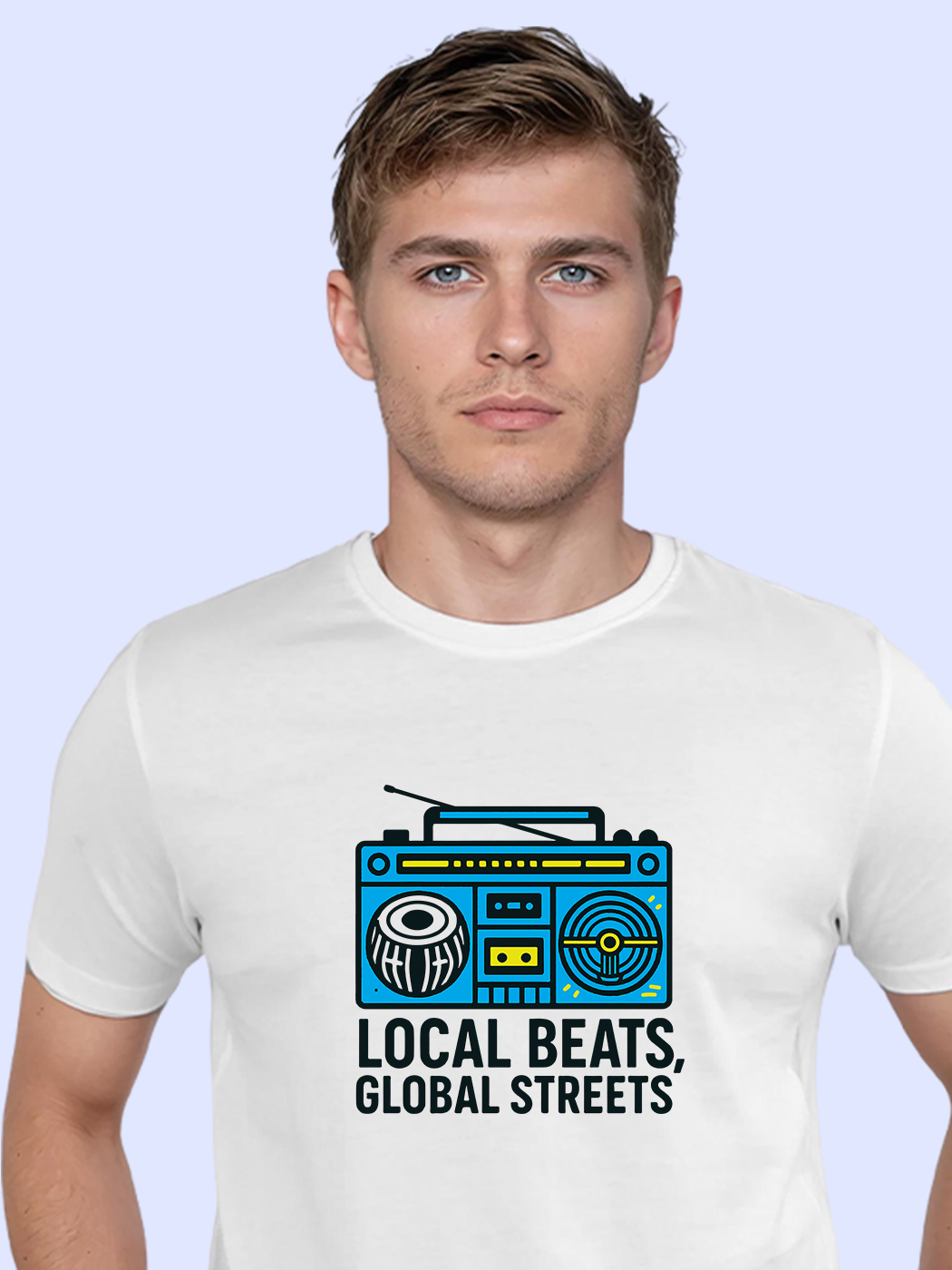 Celebrate local beats with this trendy half sleeve tee. A bold design for men who take pride in regional rhythms and cultural sounds.