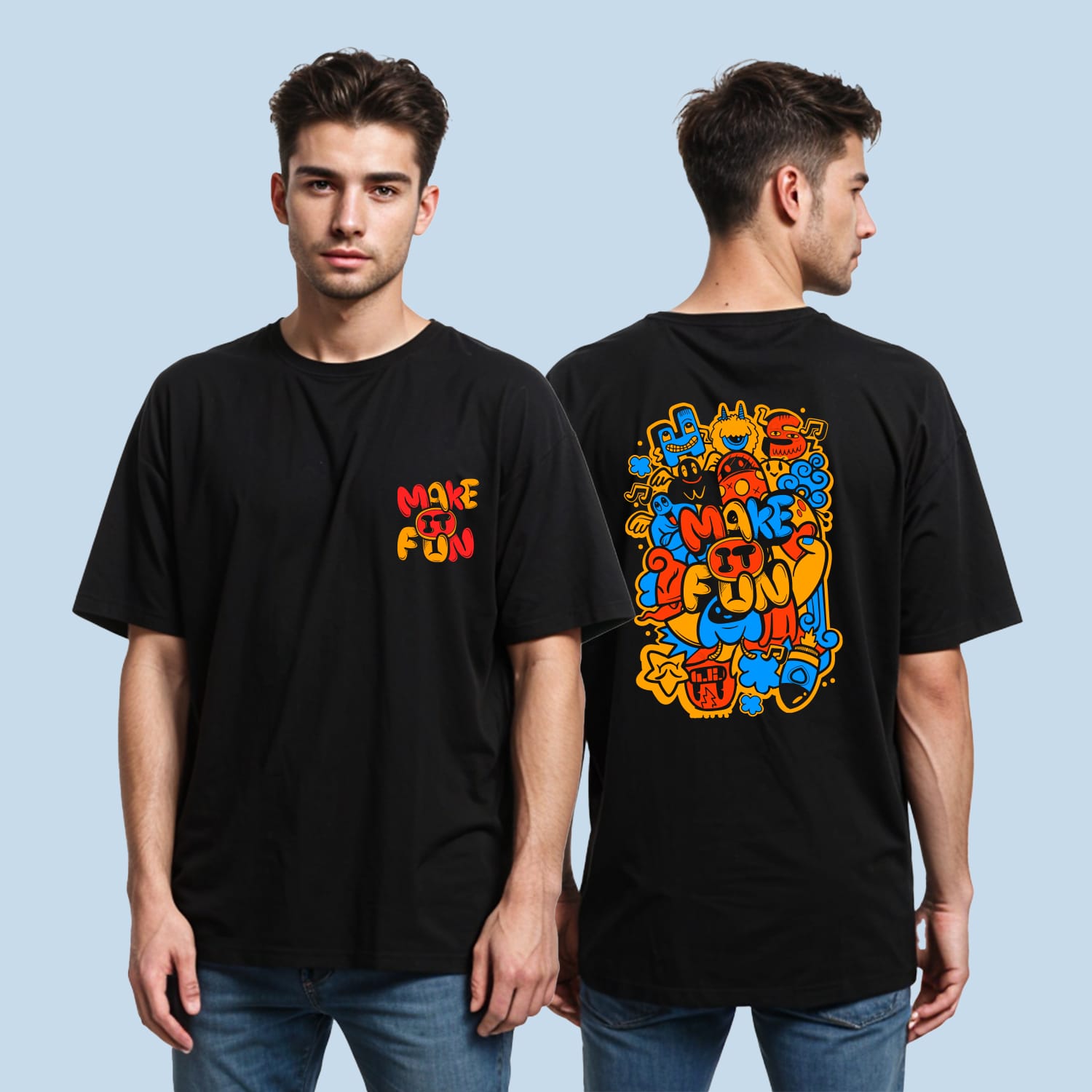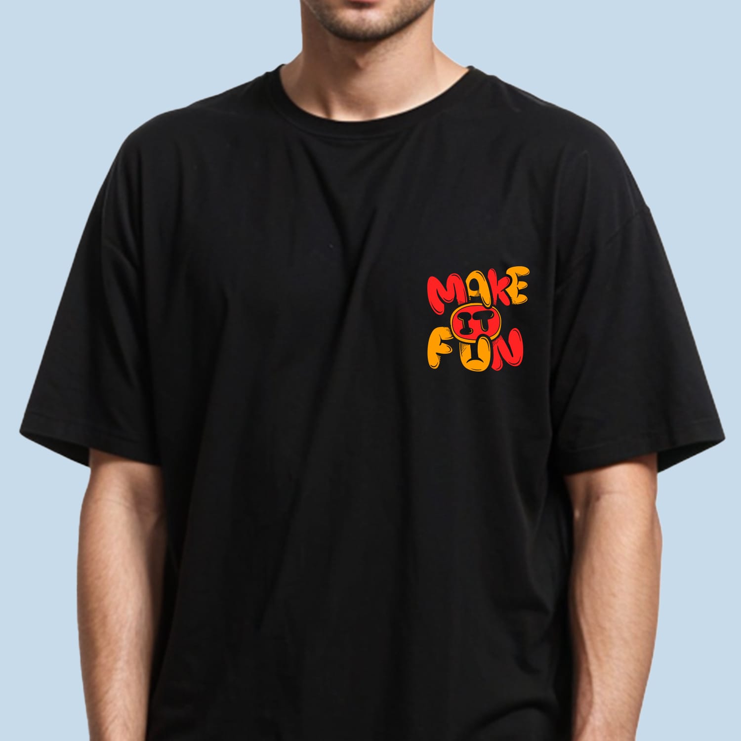 Stay trendy with the Make It Fun Back Printed Oversized T-Shirt. Soft, breathable, and stylish, it?s perfect for making a bold, carefree statement in comfort.