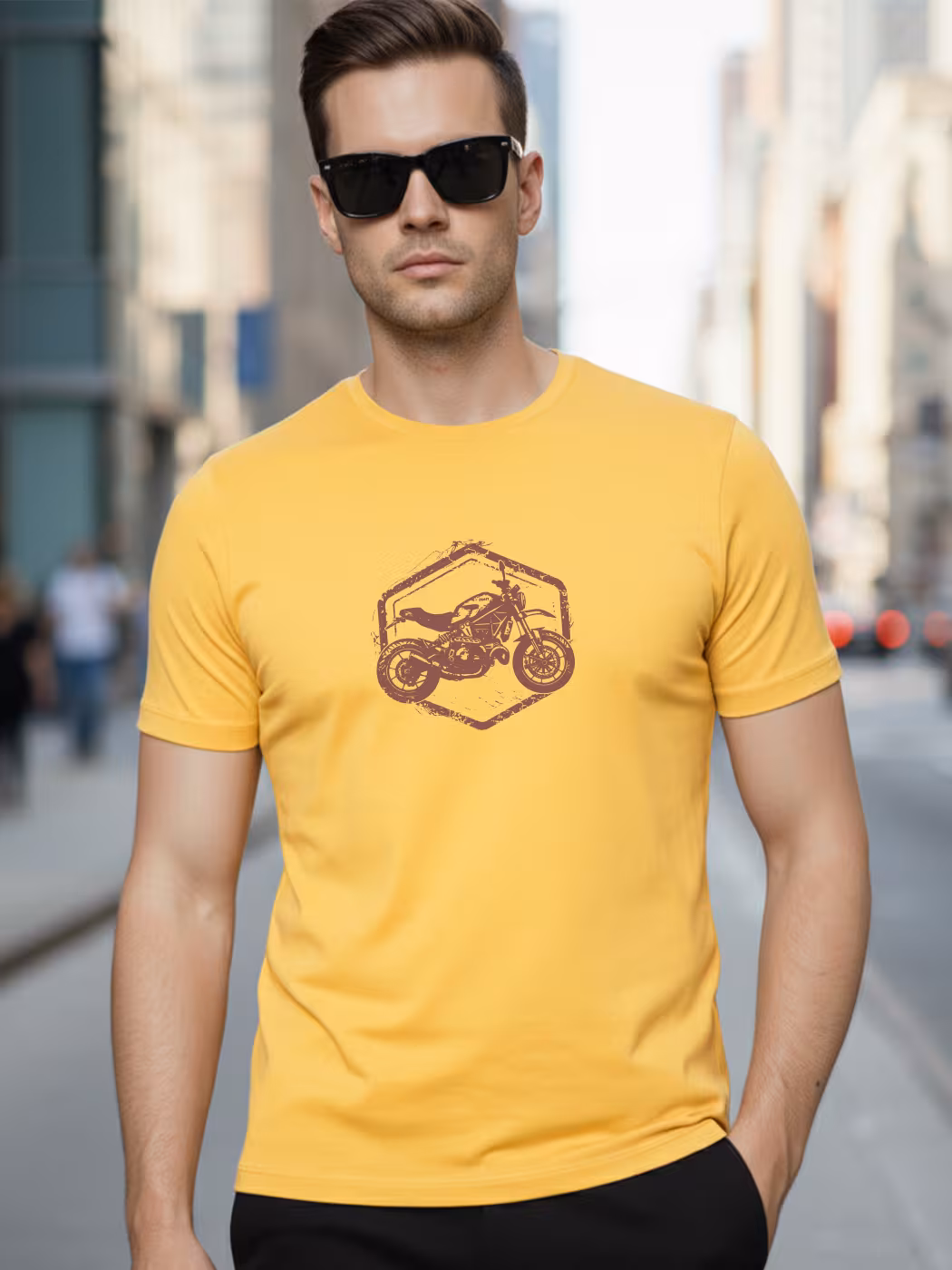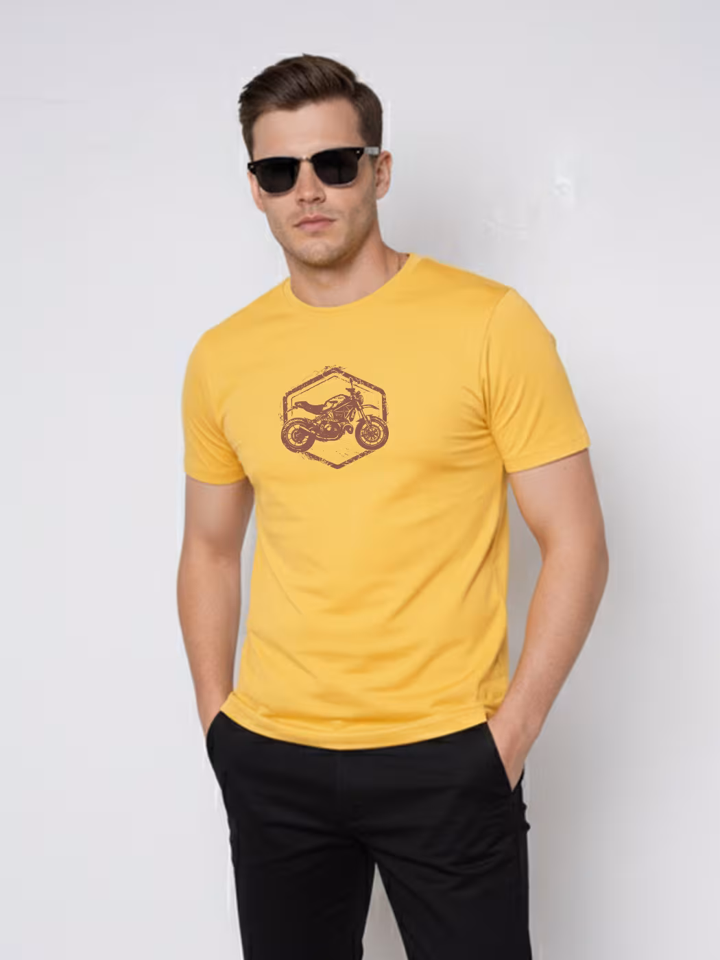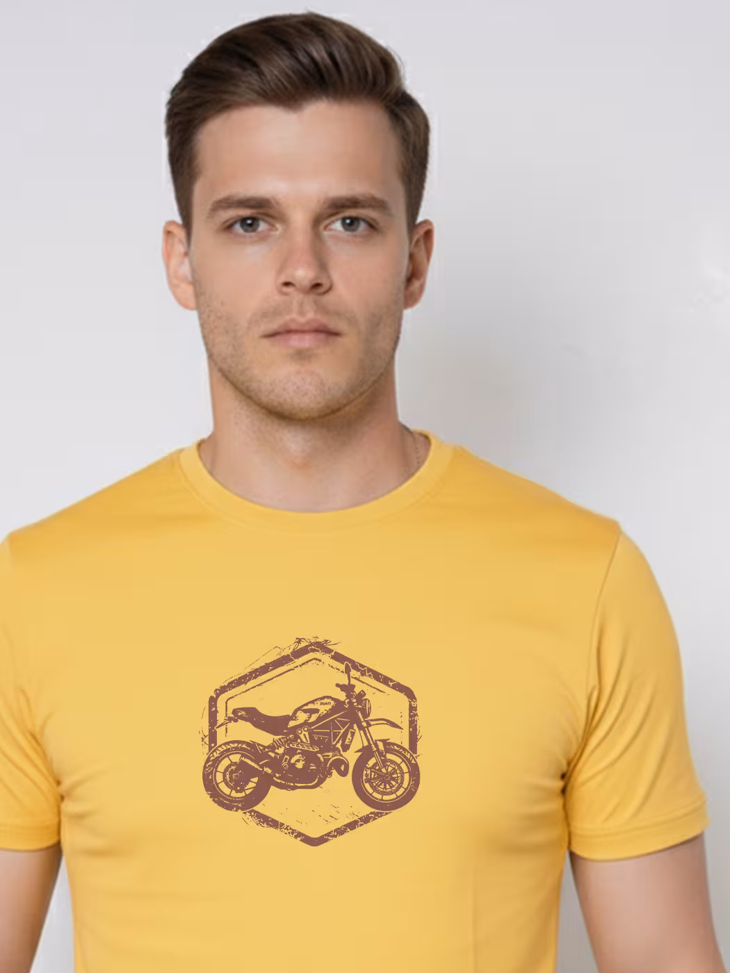 The Motorcycle Yellow T-Shirt For Men – Half Sleeve blends style and comfort with minimalist motorcycle-inspired graphics, soft cotton fabric, and a perfect fit for everyday rides or casual adventures.
