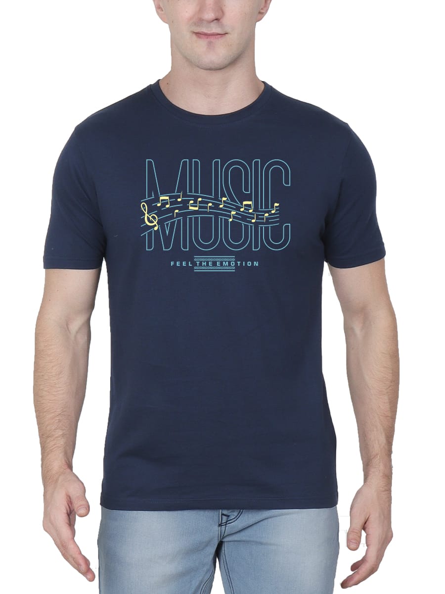 Music Feel The Emotion T-Shirt for Men features a stylish design celebrating music?s power. Made from soft cotton with half sleeves, it offers all-day comfort and style.