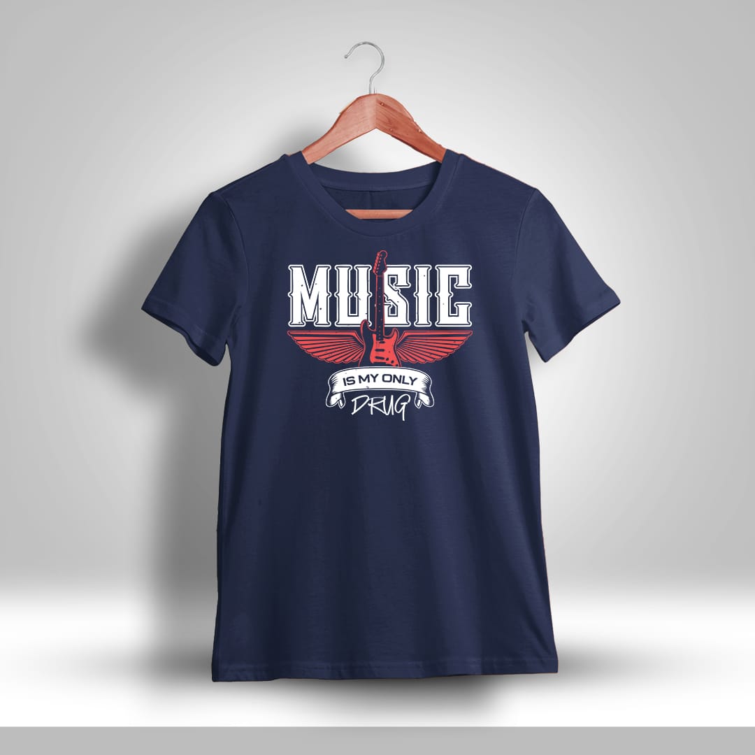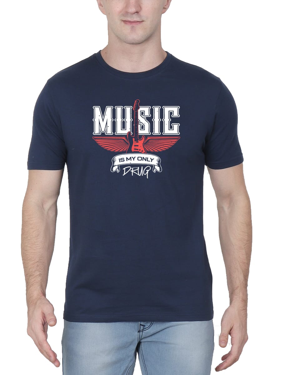 Music Is My Only Drug T-Shirt for Men offers a bold design for music lovers. Made from soft cotton, this half-sleeve tee combines comfort with a statement style.