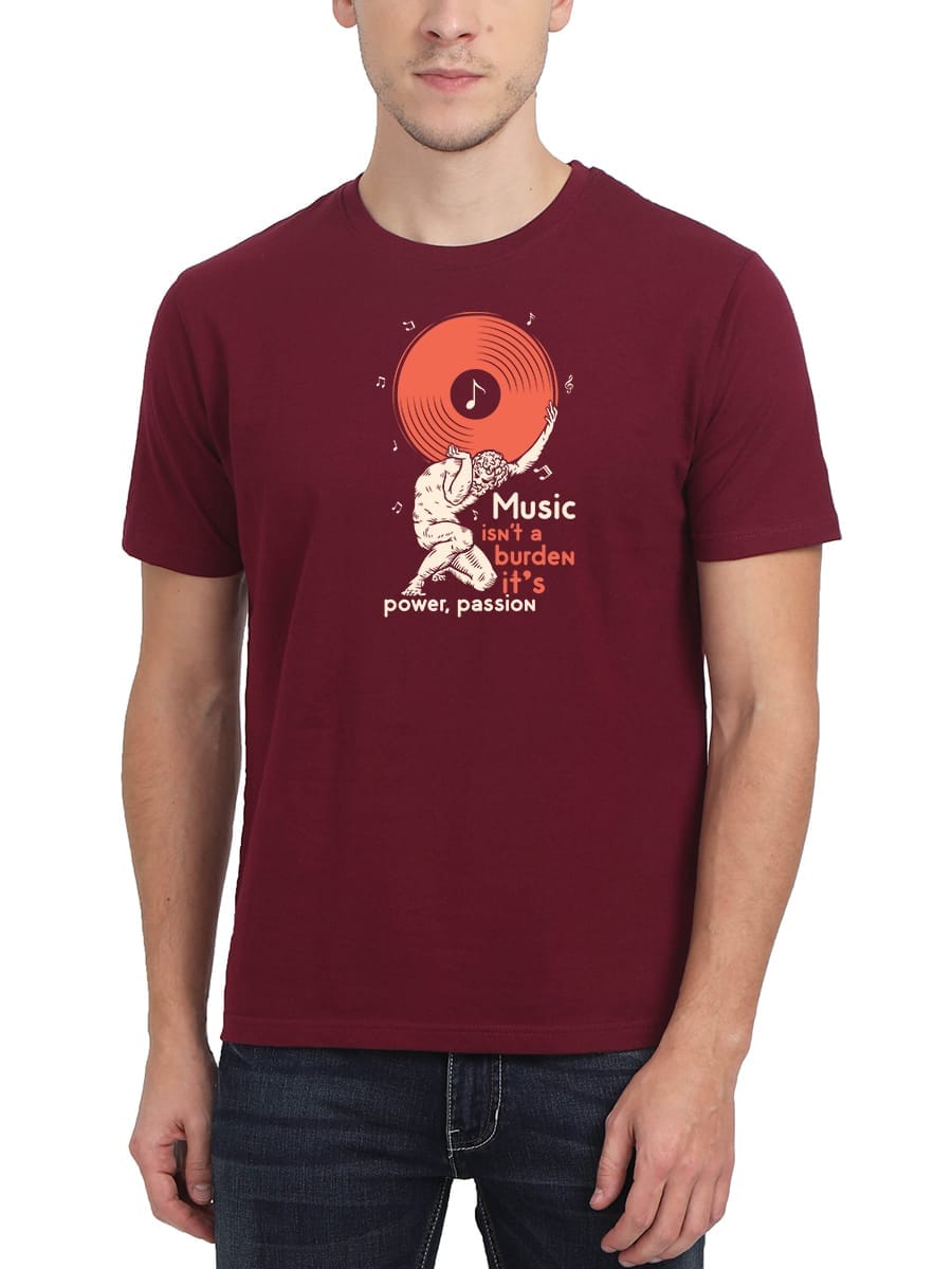 Music Isn’t A Burden It’s Power Passion Printed T-Shirt is perfect for passionate music enthusiasts, combining comfort and style in an expressive, inspiring design.