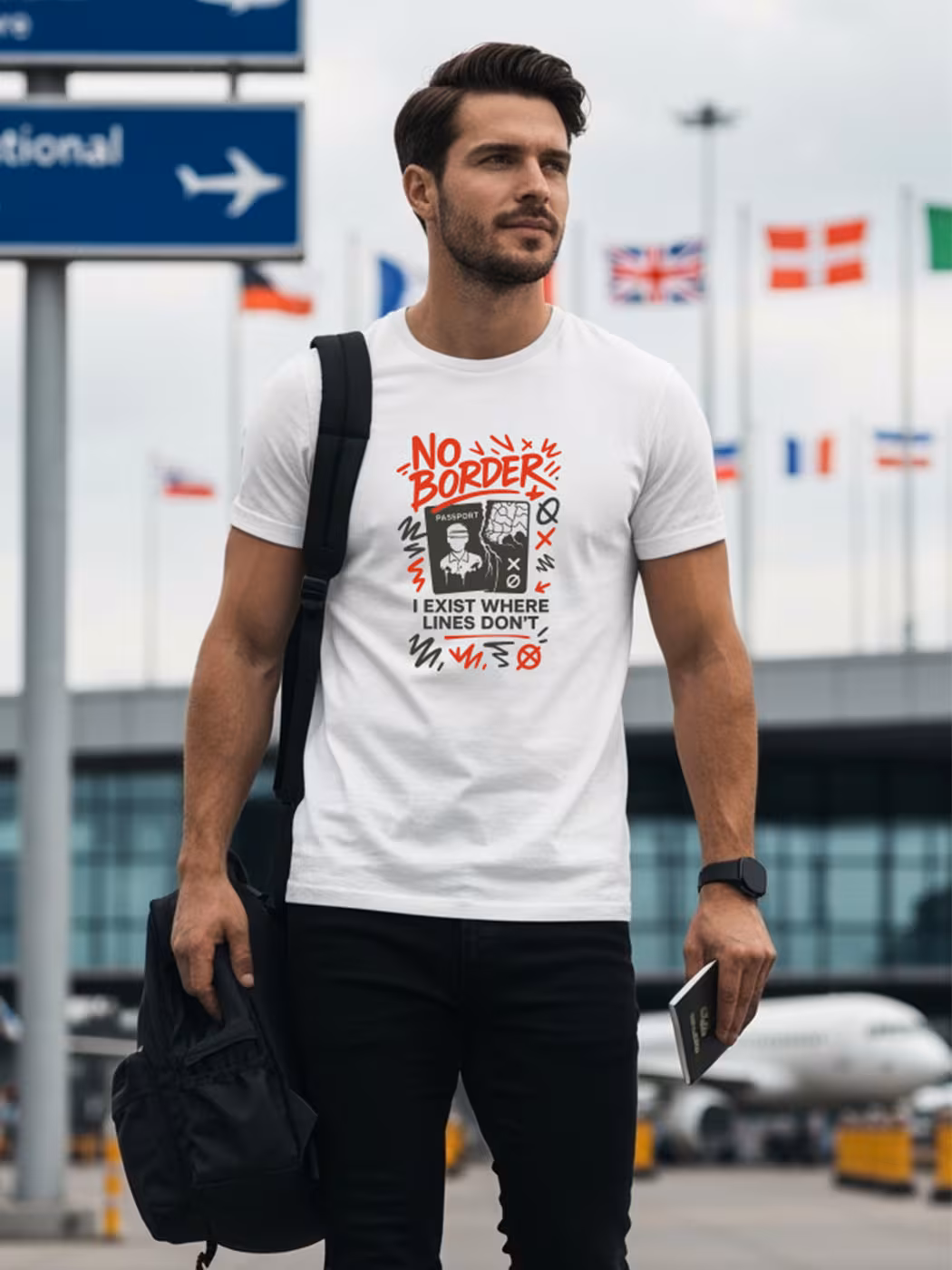 Break limits with this borderless tee—a statement piece for those who believe in unity, freedom, and the journey beyond man-made lines.
