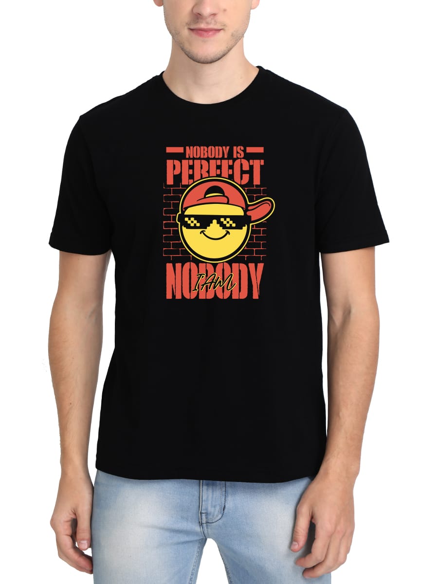 Nobody Is Perfect I Am Nobody Printed T-shirt embraces imperfections with humor, celebrating individuality and self-acceptance in a fun and stylish way for everyday wear.
