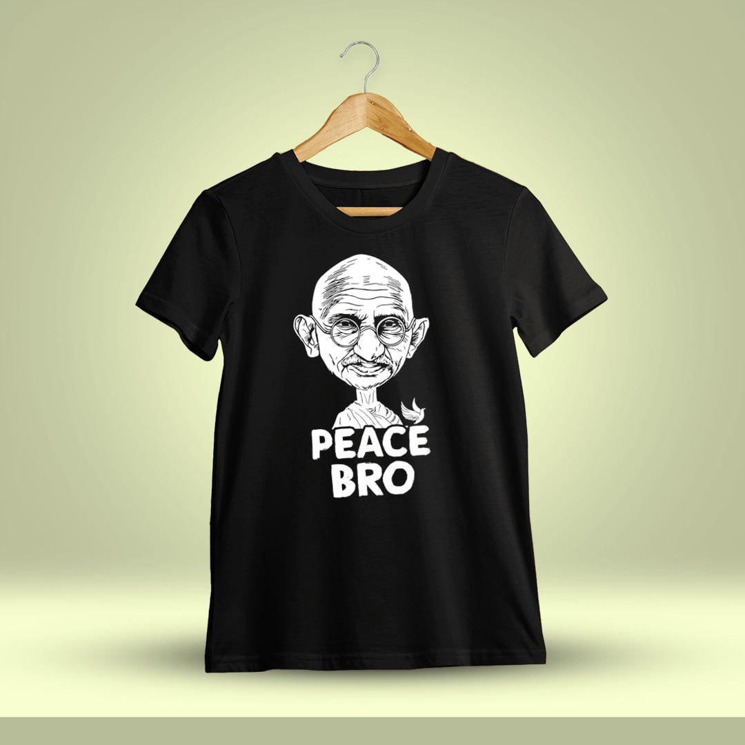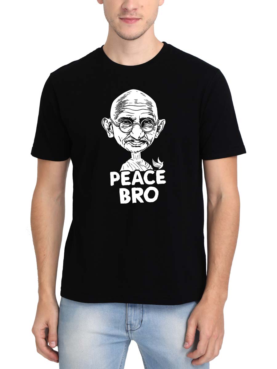 Spread peace vibes with our “Peace Bro” Men Half Sleeve T-shirt, inspired by Gandhi’s teachings. Embrace tranquility and harmony in style!