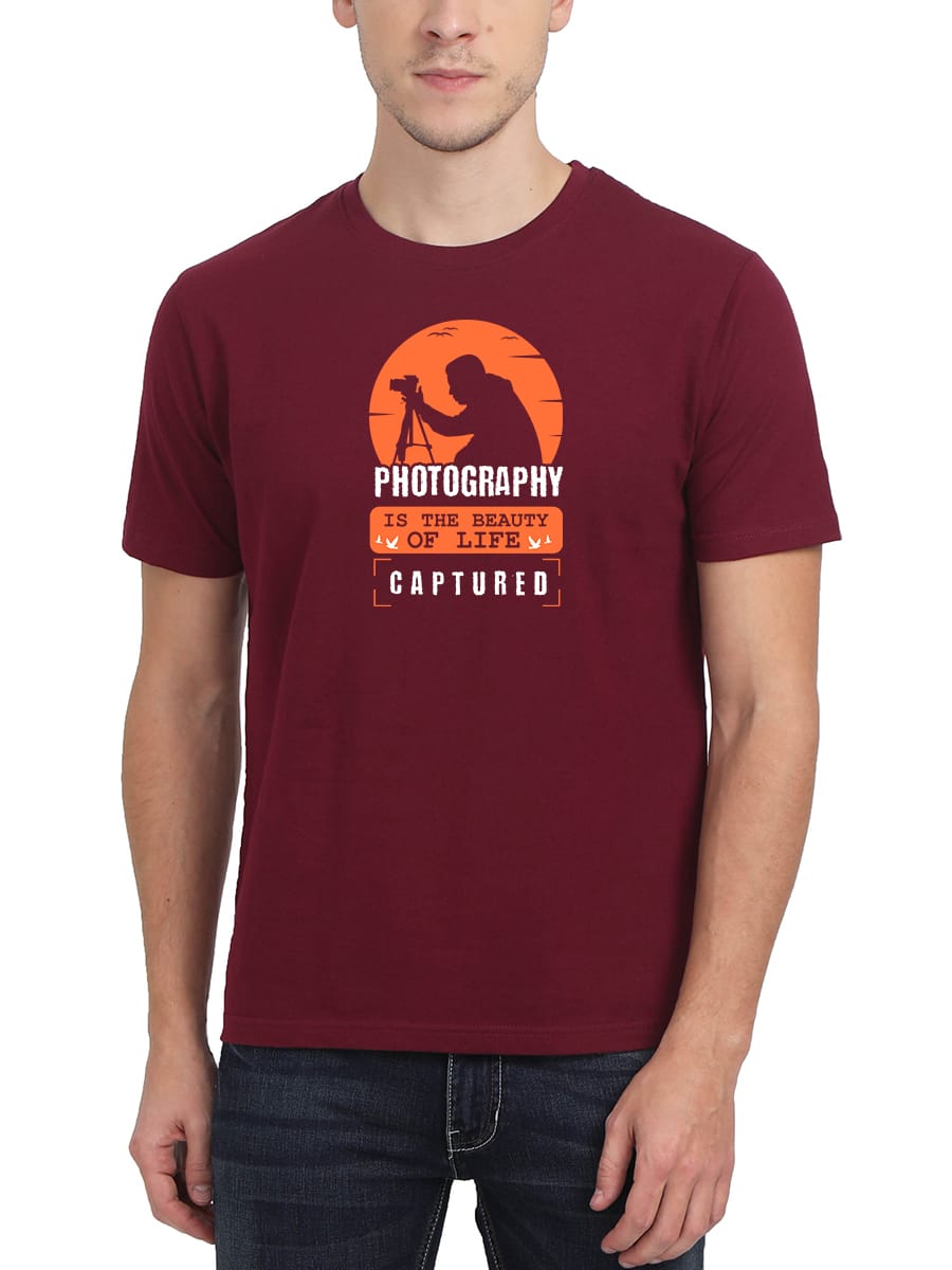 Celebrate your passion with this Photography Is The Beauty Of Life Printed T-Shirt, a perfect choice for photographers and creative minds who see beauty in frames.