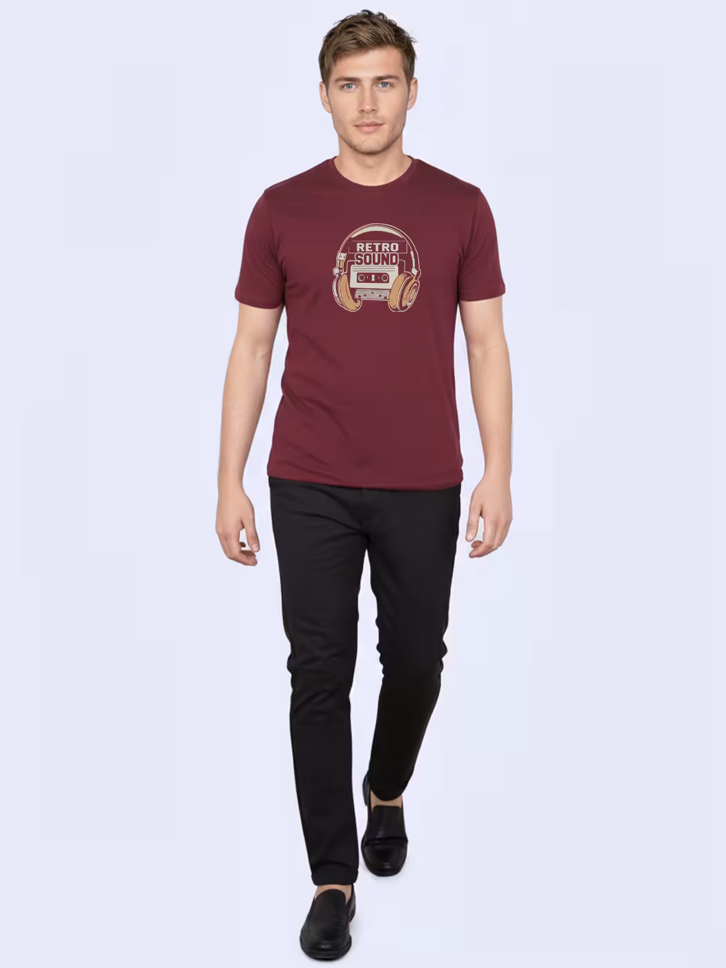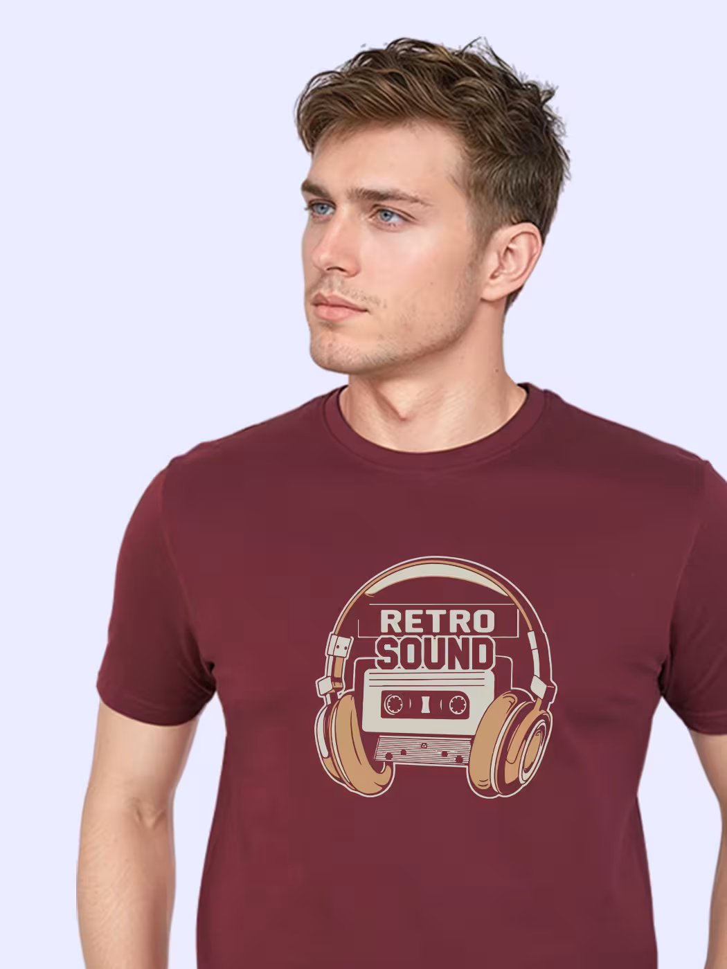 Retro vibes meet modern comfort in the Retro Sound T-shirt, crafted from cotton, half sleeves, a perfect pick for vintage music and style enthusiasts.