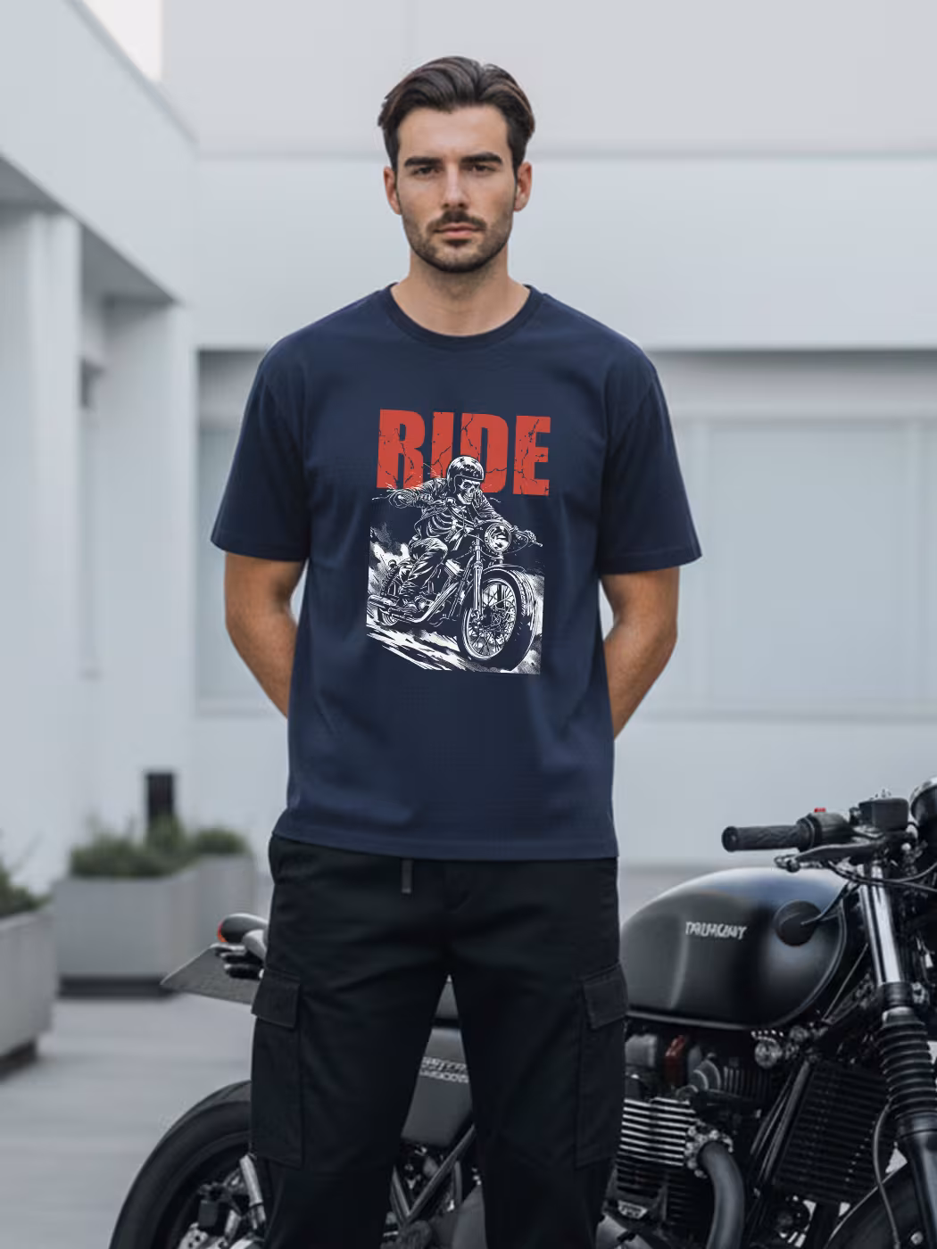 The Ride Your Bike T-Shirt For Men – Half Sleeve blends style and comfort with minimalist motorcycle-inspired graphics, soft cotton fabric, and a perfect fit for everyday rides or casual adventures.