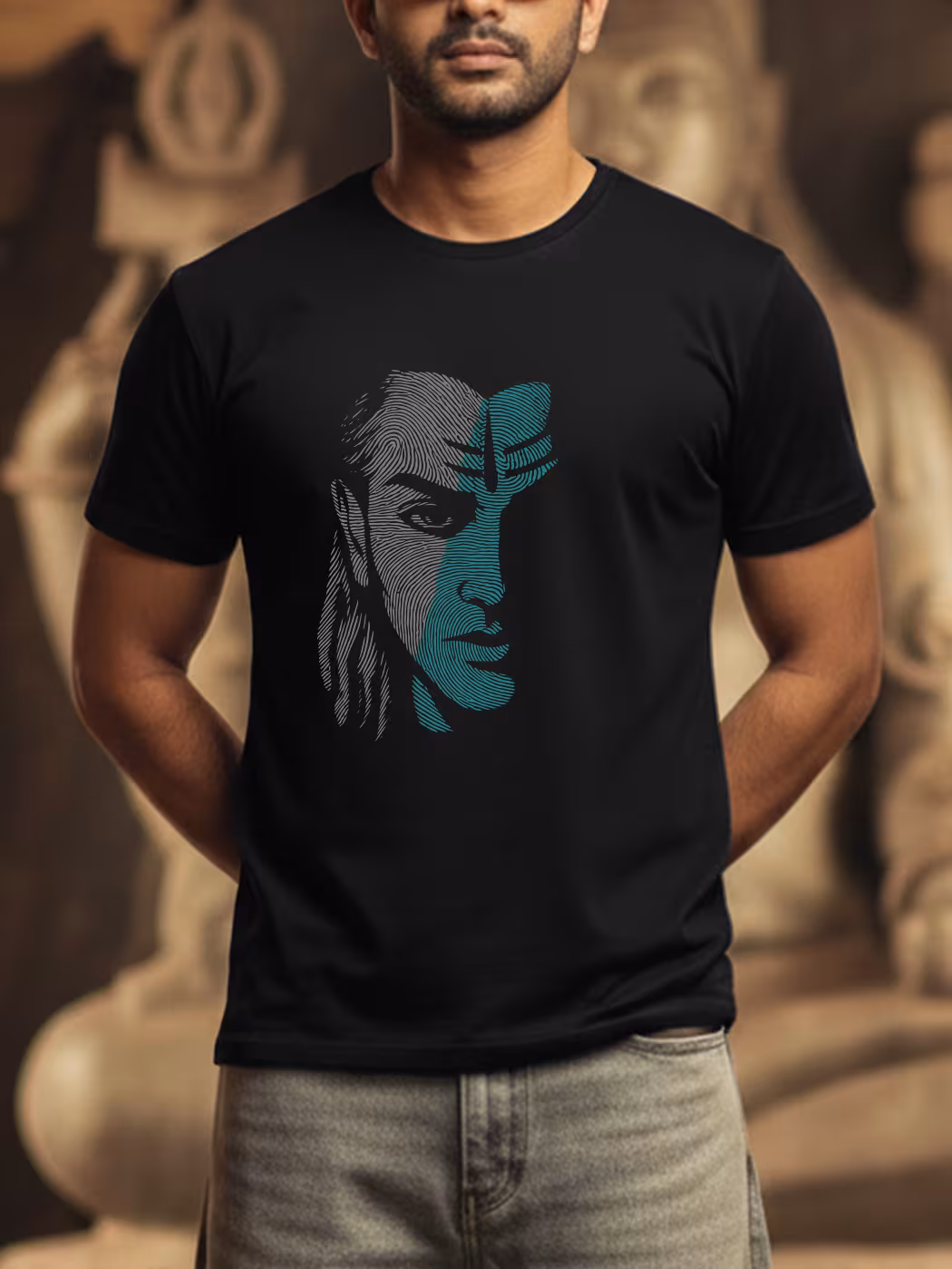 The Shiva Face T-Shirt captures divine grace and strength through intricate artistry. A spiritual and stylish addition for devotees embracing modern culture and tradition.
