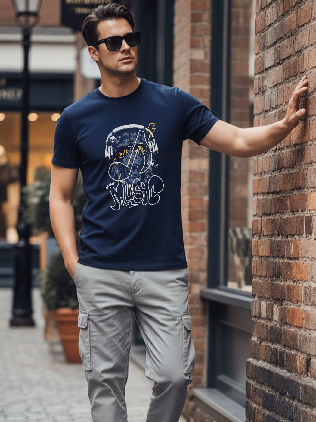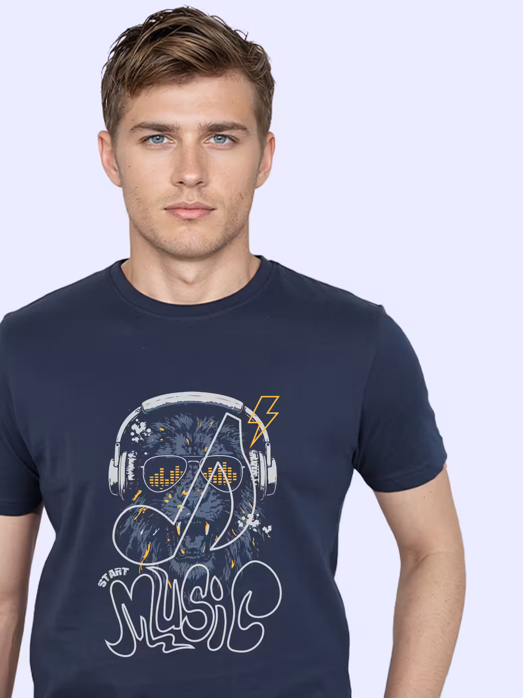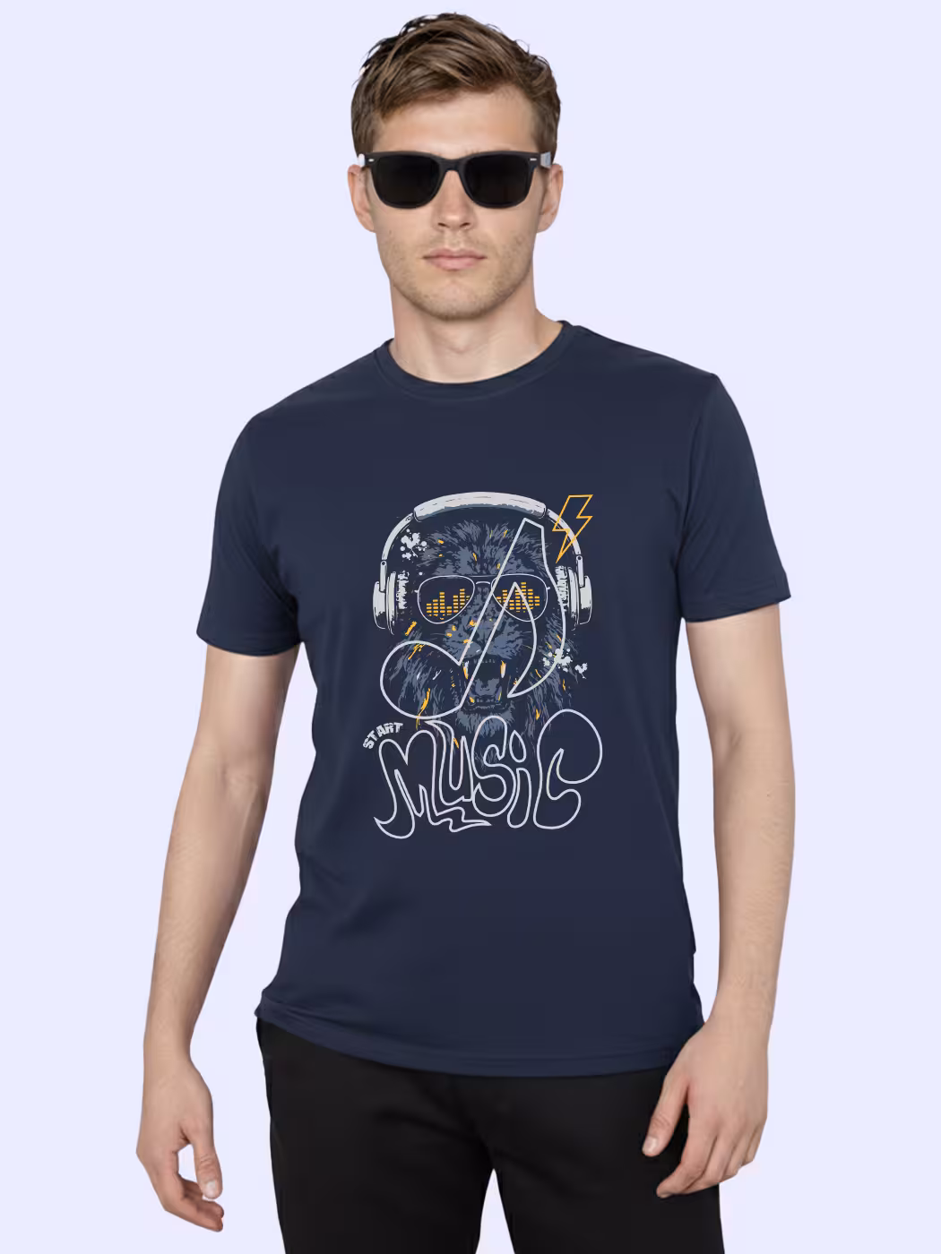 Roar with rhythm in the Start Music Lion Graphic T-shirt, bold design, half sleeves, crafted in soft cotton for stylish music lovers everywhere.