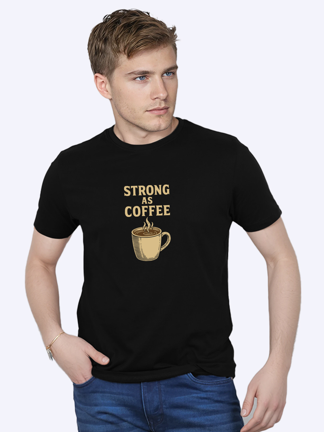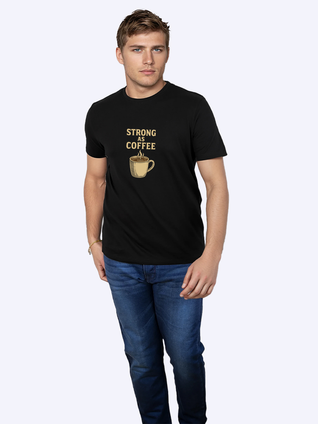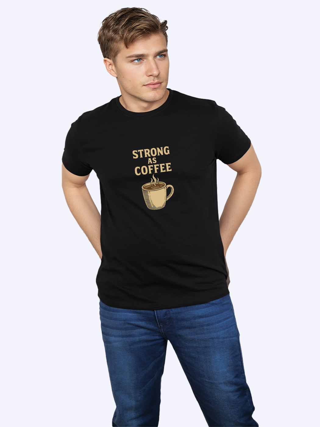 Strong As Coffee Printed T-Shirt for men with half sleeves. Perfect blend of comfort and casual style. Ideal for everyday wear, parties, or gifting.
