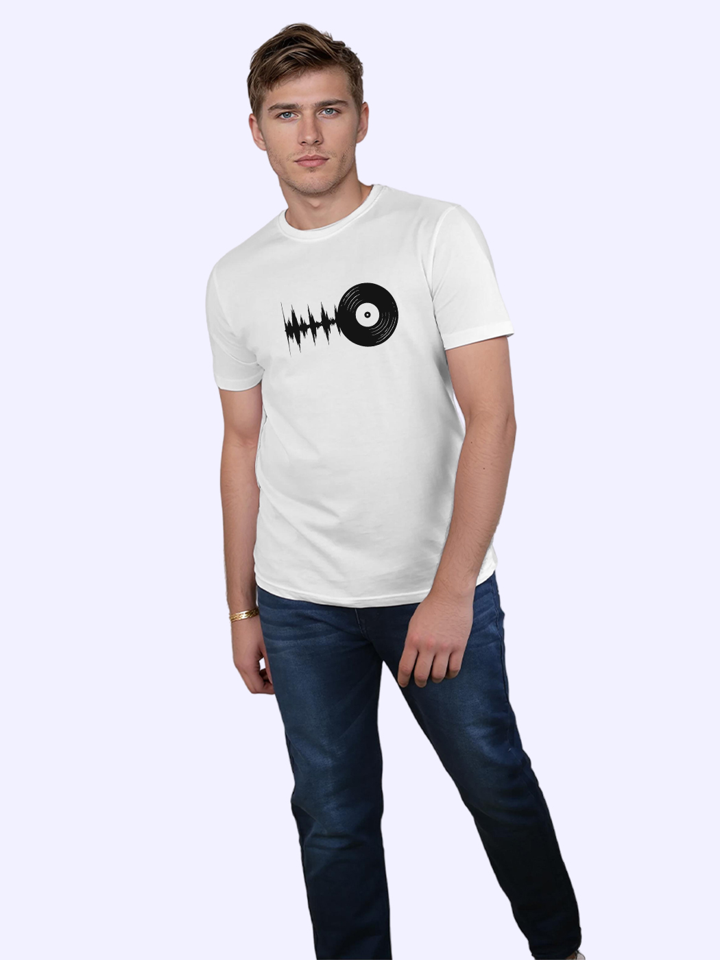 Vinyl Graphic Printed T-Shirt for men with half sleeves. Perfect blend of comfort and casual style. Ideal for everyday wear, parties, or gifting.