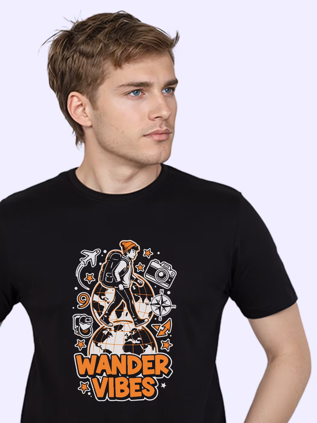 Embrace good energy with the Wander Vibes T-Shirt. Perfect for explorers and dreamers, this lightweight half-sleeve tee brings effortless comfort and a positive vibe.